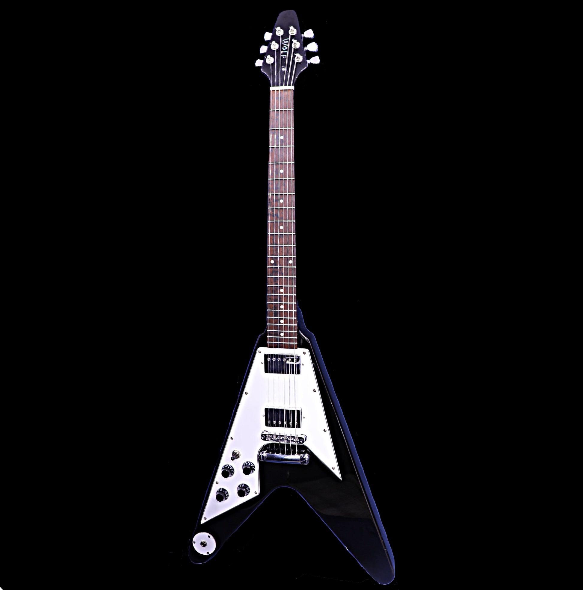A familiar Delta Wing shaped, Basswood body, Maple neck, sustainably-sourced Jatoba fretboard, polished, natural Bone nut, Gotoh tuners and sporting an eye catching Abalone shell Wolf headstock name inlay.