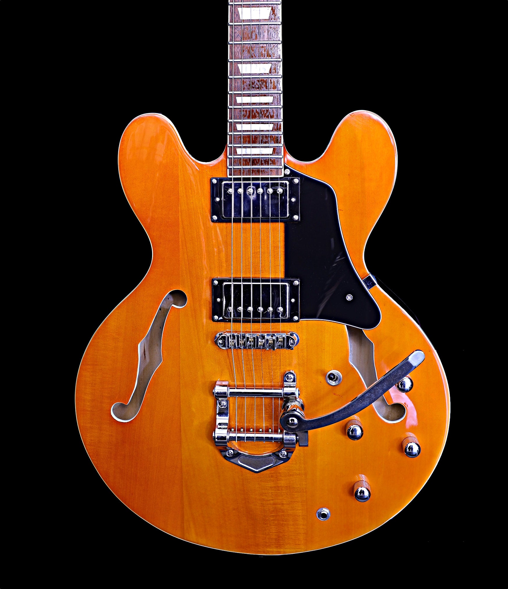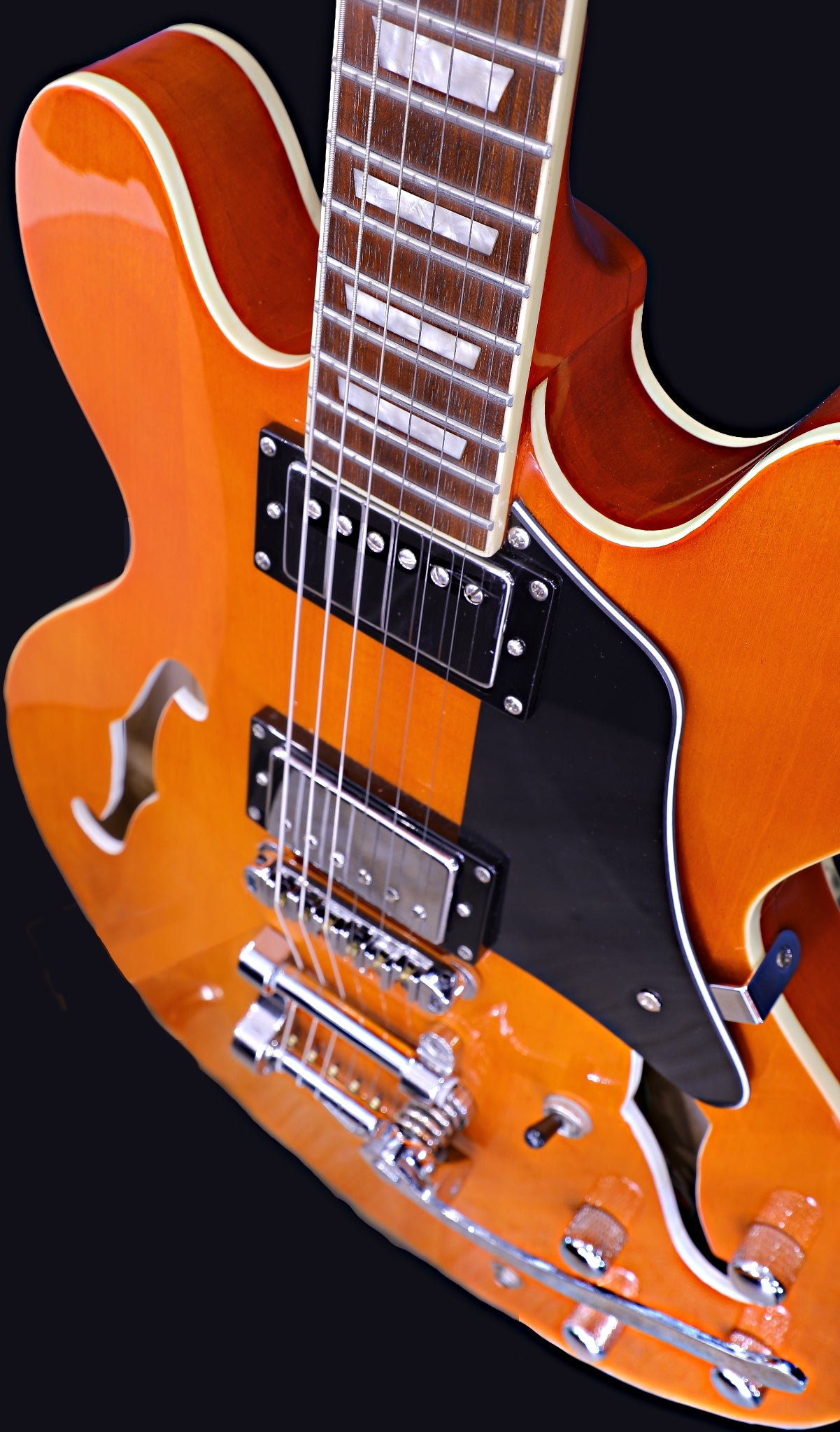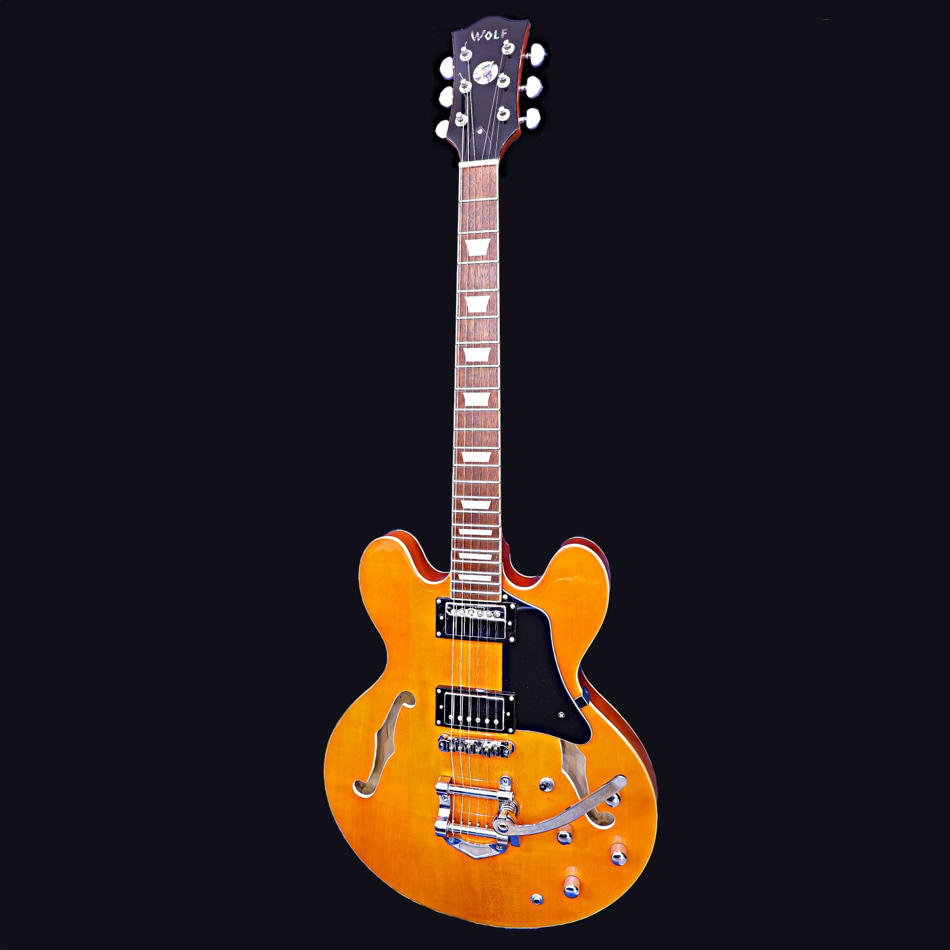 Twin Howling Wolf Humbuckers matched with a Bigsby-style roller bridge Tremolo system and Tune-o-Matic saddle, gives the player a nice vintage feel, look and sound that will growl with conviction when called upon to do so.