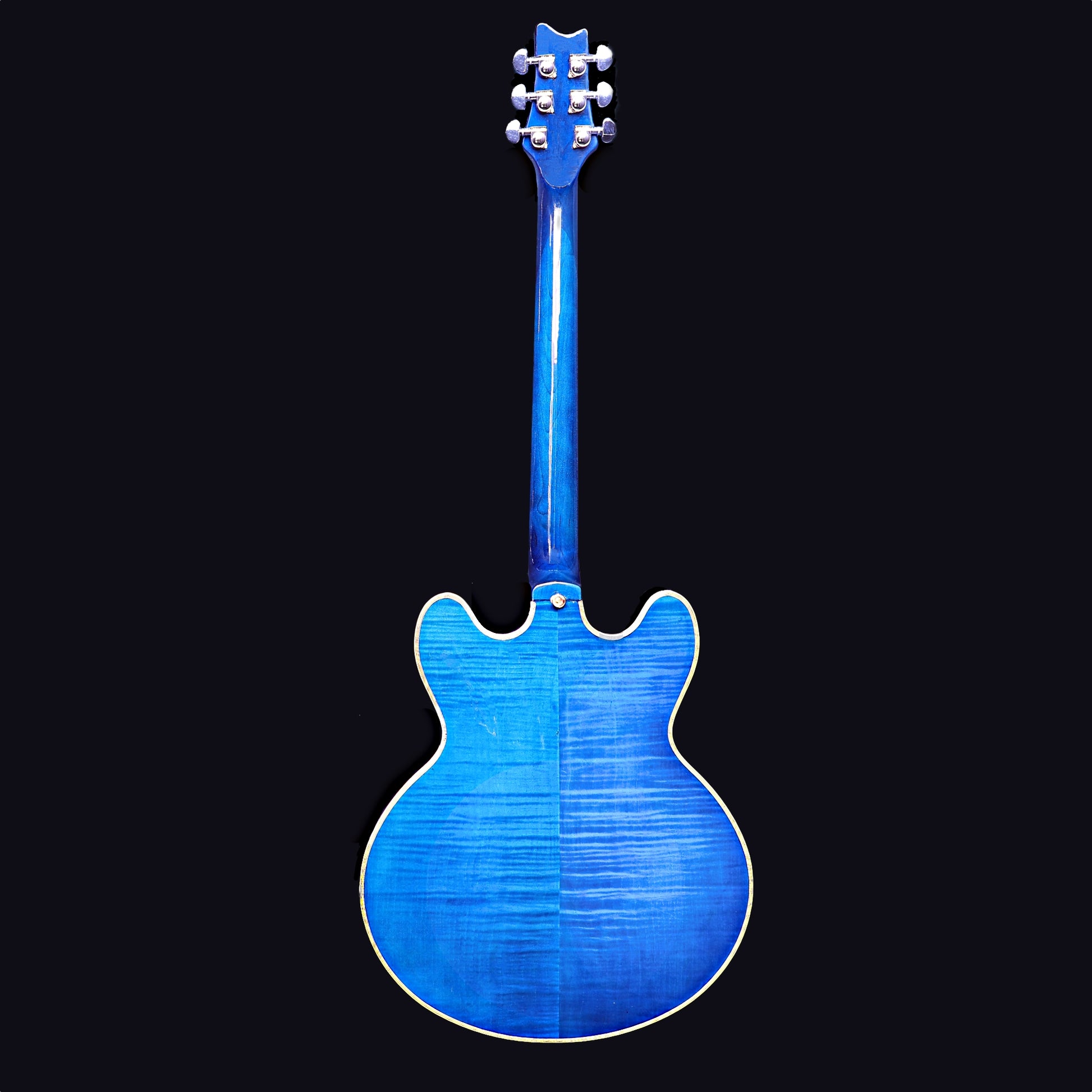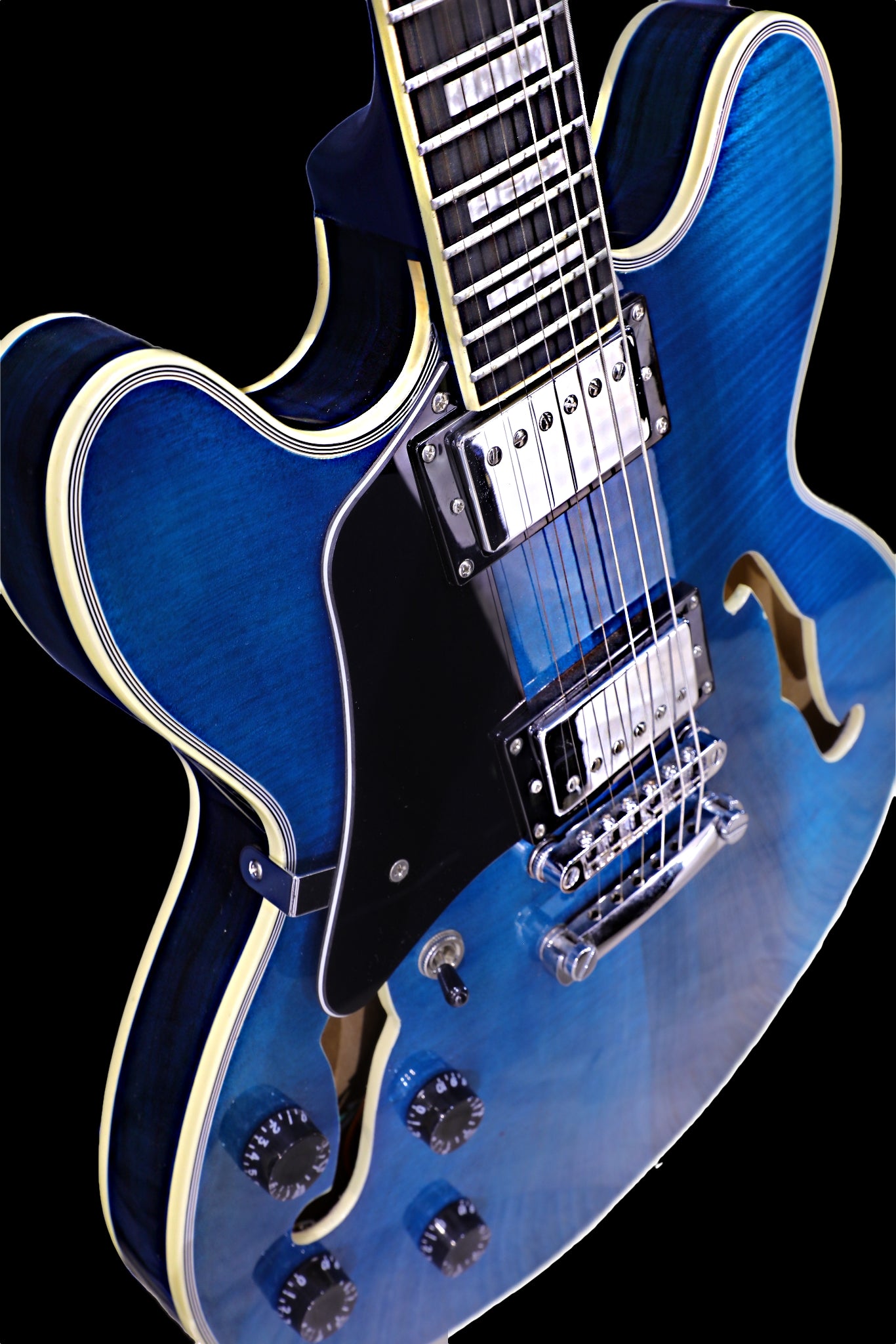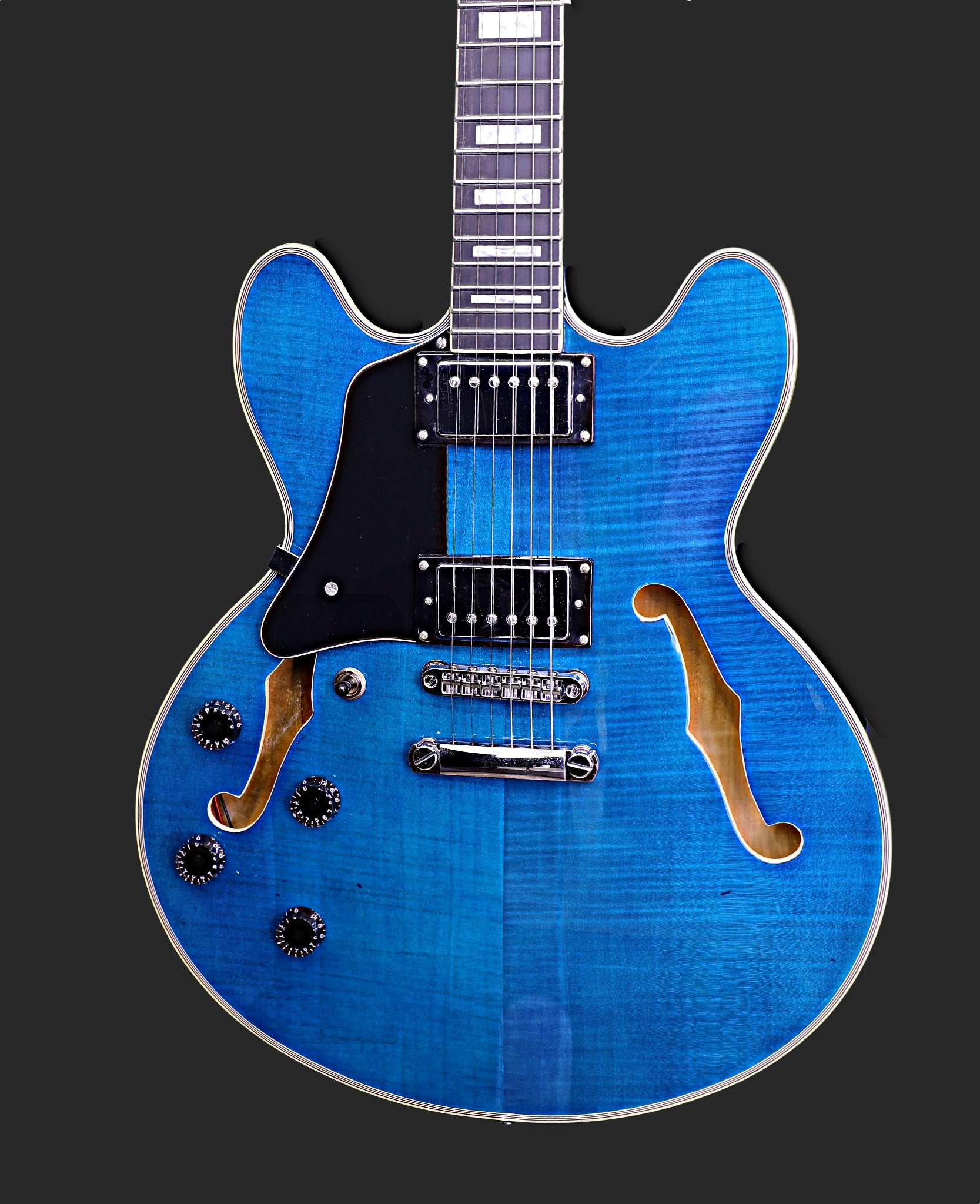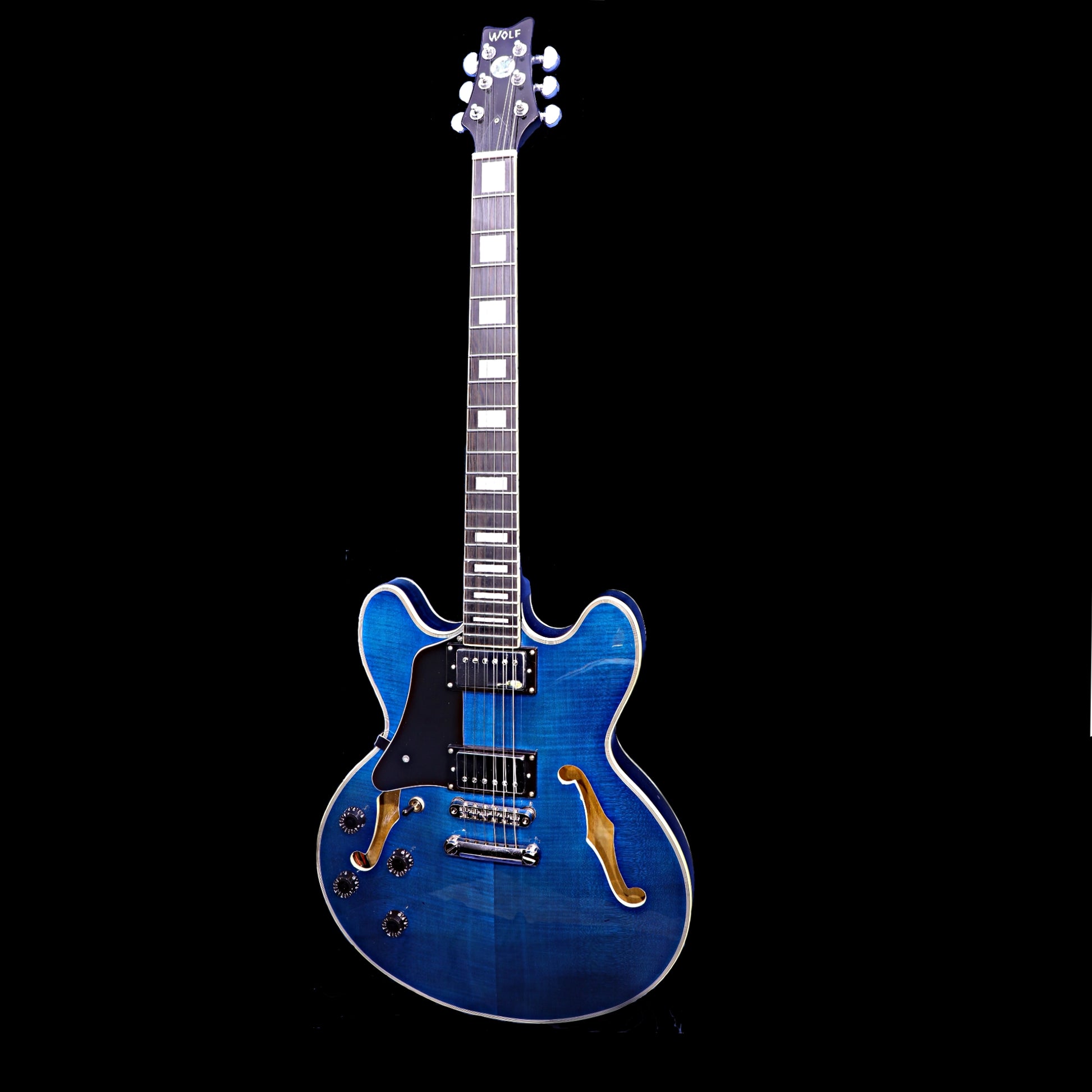The Wolf Heritage Series G-Dawg is a semi-hollow double cut away workhorse which is capable of creating many tones for any style of music. This machine comes with a Mahogany neck and core, basswood body, flame maple veneer and triple binding.