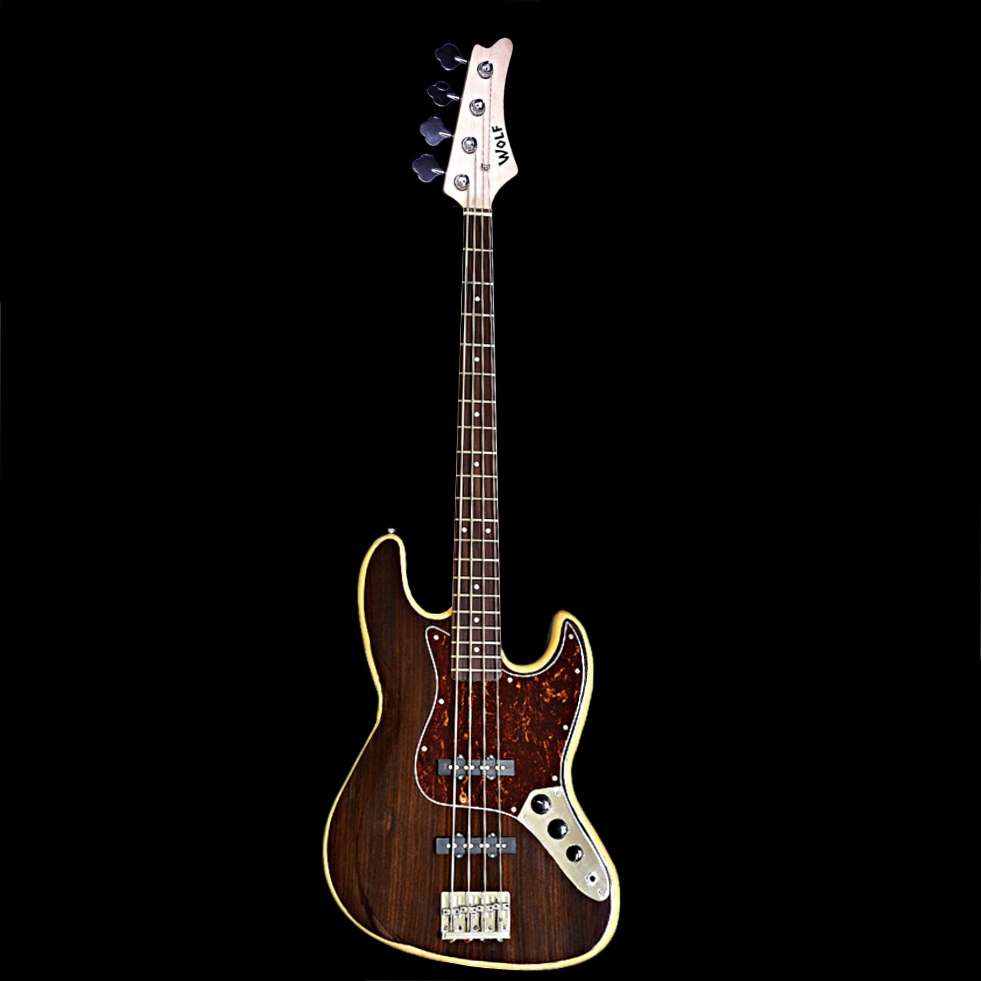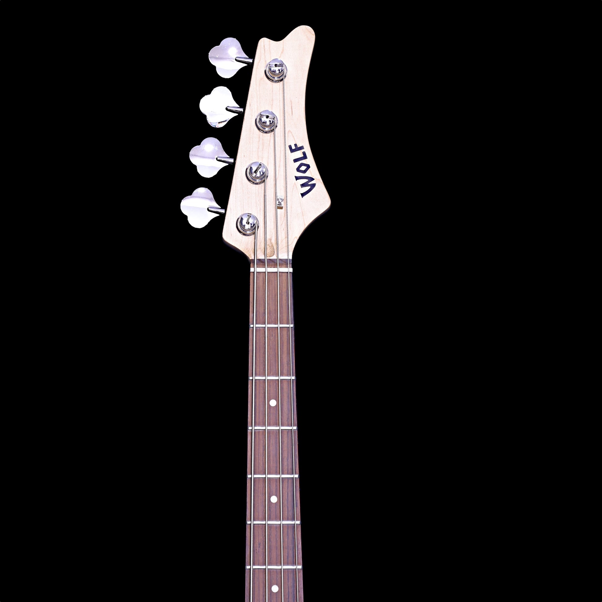 The Wolf J-Dawg Natural is our familiar and reliable vintage styled bass, ready for all live and recording situations. The J-Dawg features a natural basswood body with a rosewood veneer, our classic single coil wolf bass pickups, chrome hardware, plus 2 volumes and one tone control. The maple neck has a classic J style construction with a 20 medium jumbo fret loaded rosewood fingerboard.
